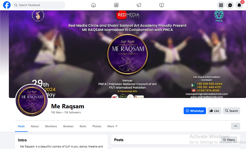 The Me Raqsam event in Islamabad was a remarkable experience, and to boost its reach, Shakir entrusted me with optimizing the Facebook page settings and increasing its followers. My efforts successfully enhanced engagement and visibility. The event’s link is embedded in the image—click to explore more!